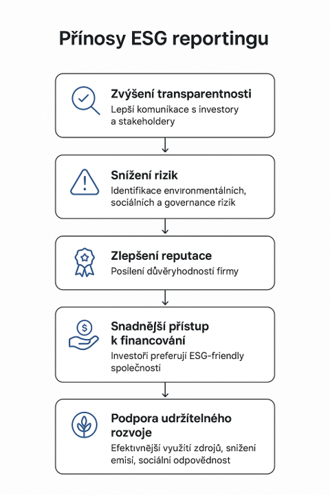 Posoudíme a společně nastavíme sběr potřebných ESG dat v podniku a přípravu Vašich Zpráv o udržitelnosti podnikání k ověření, které Vám zajistí větší důvěryhodnost zveřejňovaných informací ve vztahu zainteresovaným stranám (zákazníkům, partnerům, regulačním orgánům, bankám, investorům apod.).